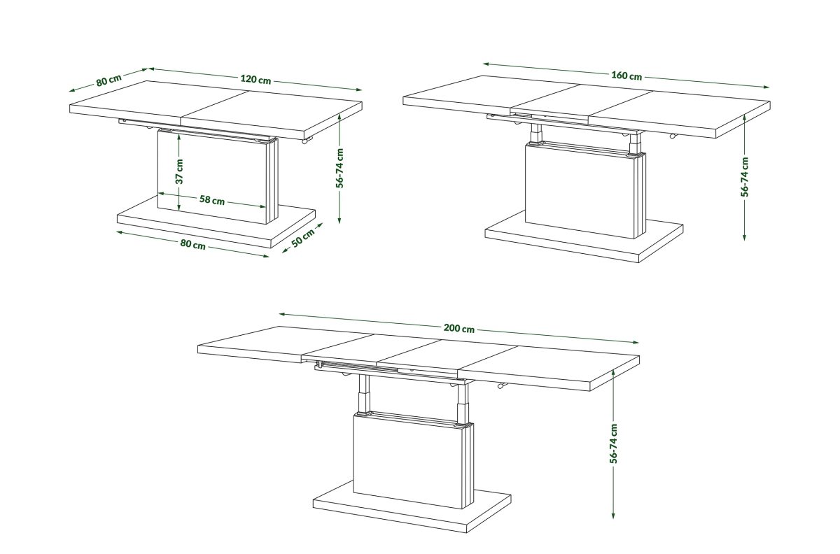 | Størrelse | (B x D x H): 120-200 cm x 70-80 cm x 56-74 cm |
