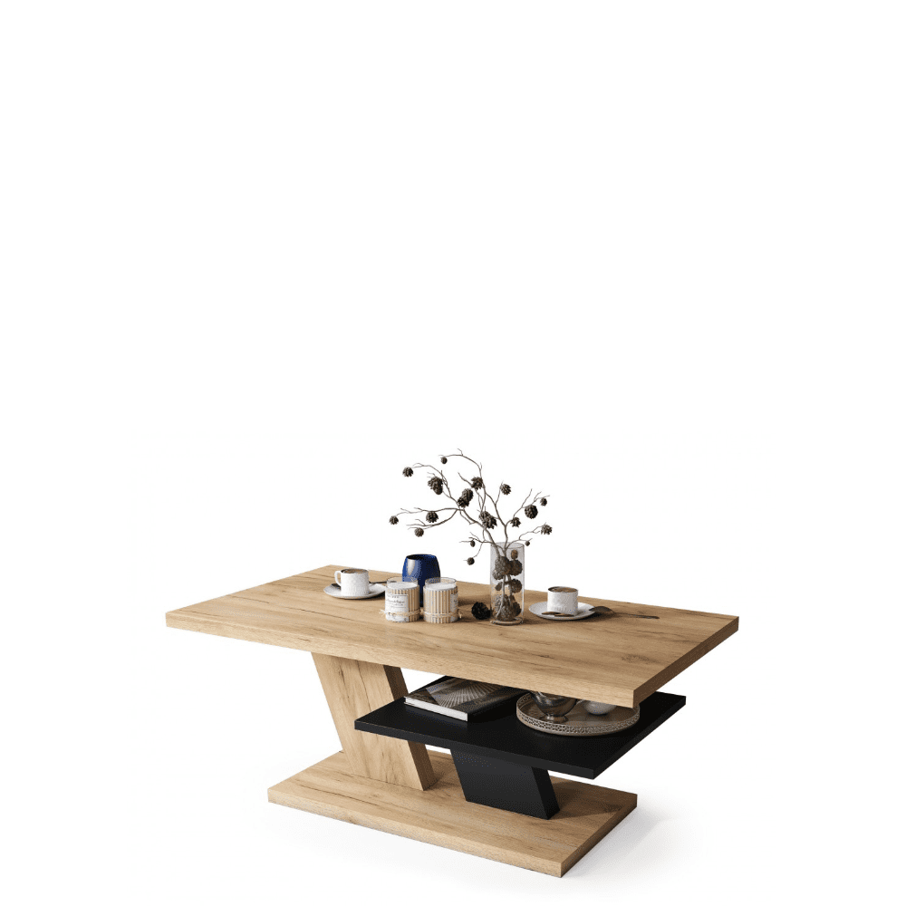 Hvis du ønsker et sofabord, der falder naturligt ind i rummet, er CLIFF i Gylden Eg og sort et godt valg.