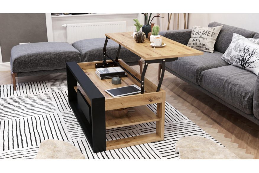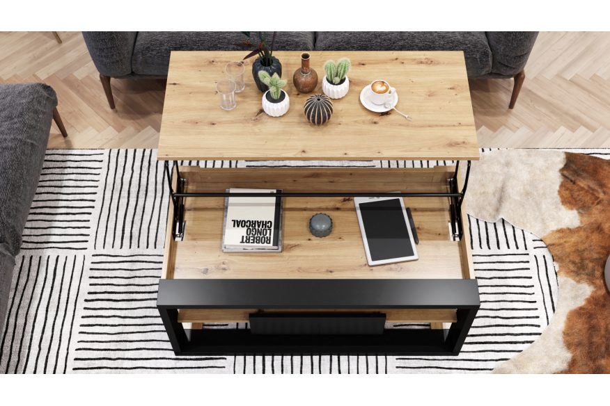 FRAME – sofabord med hæve-/sænkefunktion i Artisan eg og sort mat
