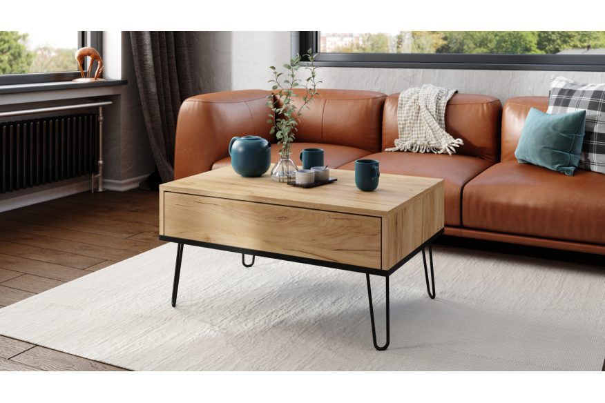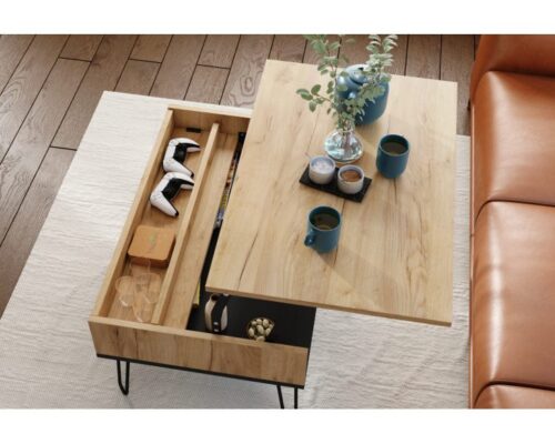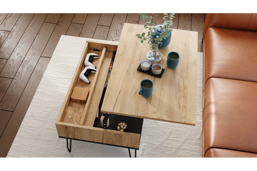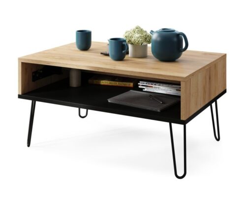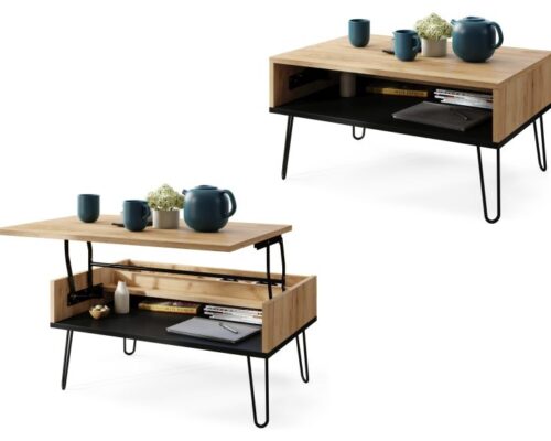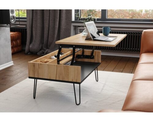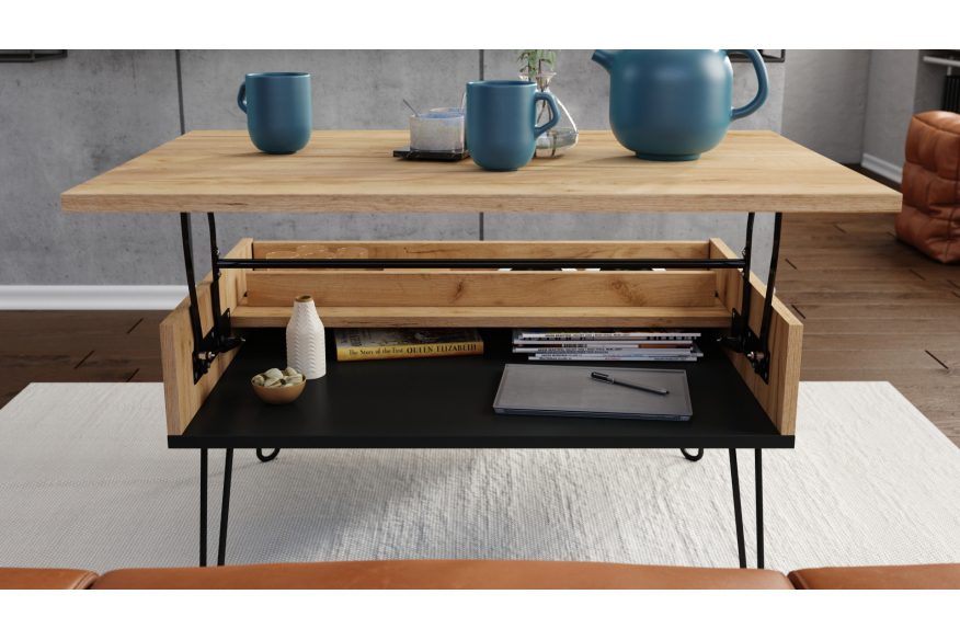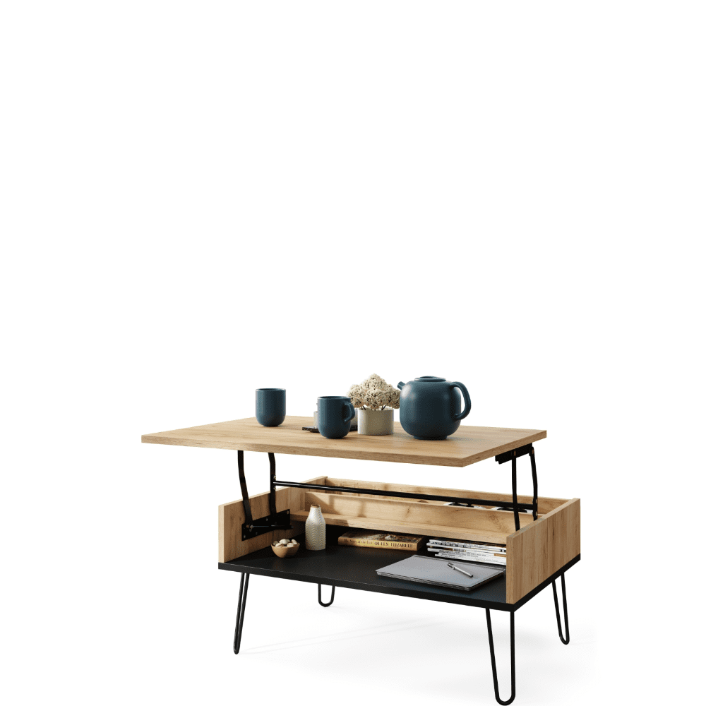 Sofabord med hævefunktion HAIRPIN S-90: Gylden eg og sort