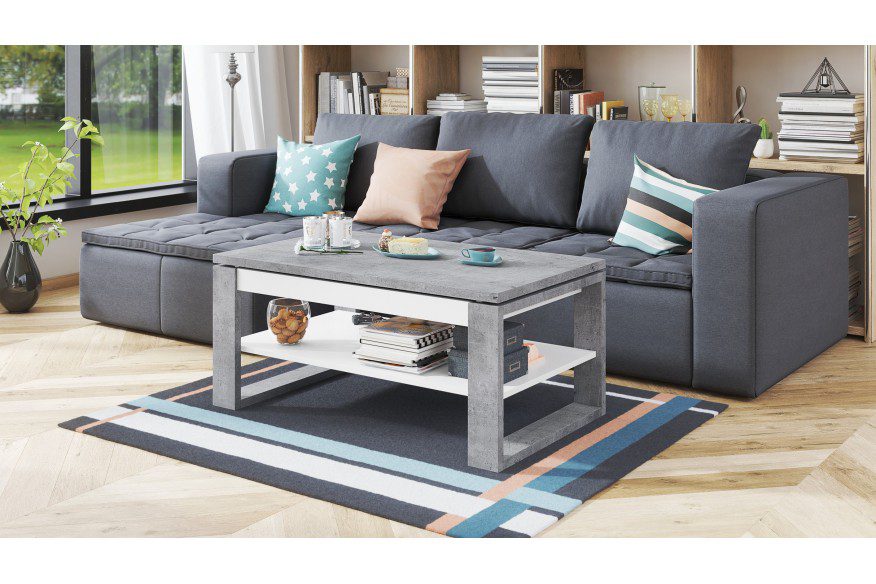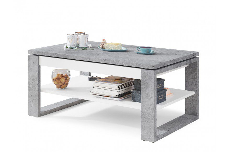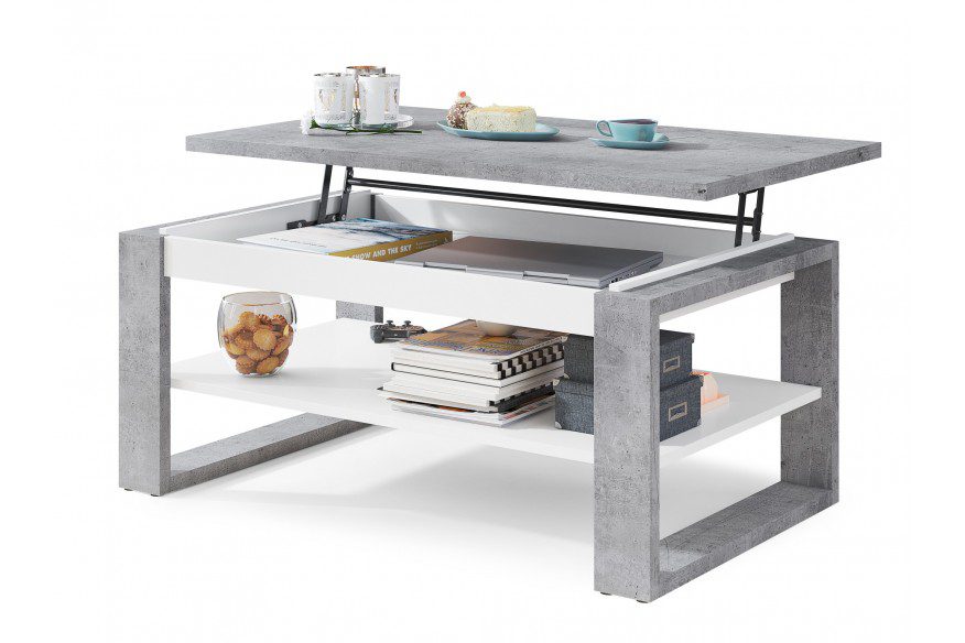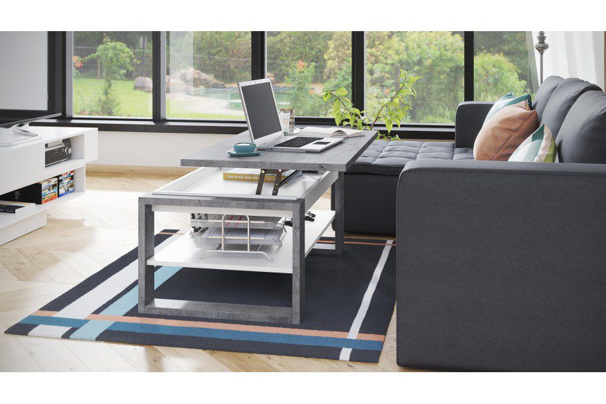NUO – funktionelt hæve-/sænke sofabord i beton-look og hvid