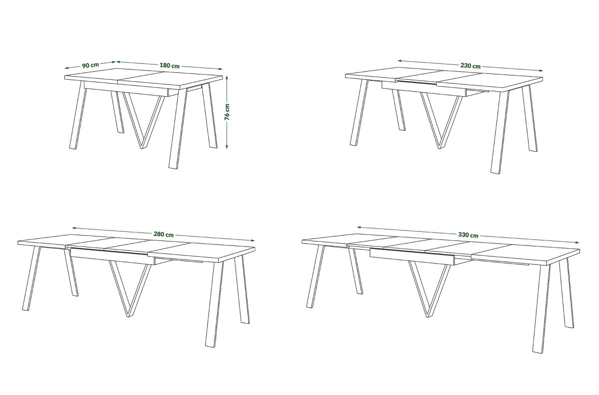 ✓ Imponerende rækkevidde – udvid bordet fra 180 til hele 330 cm