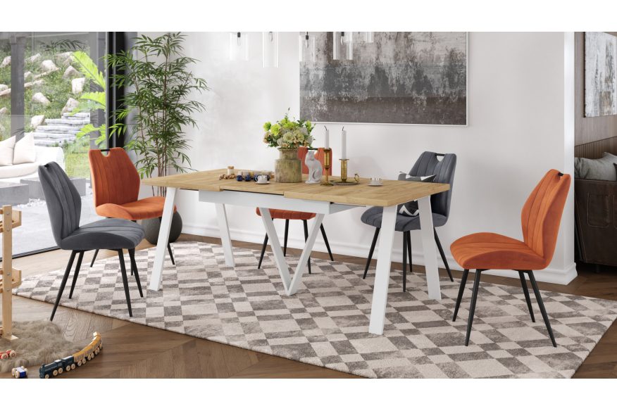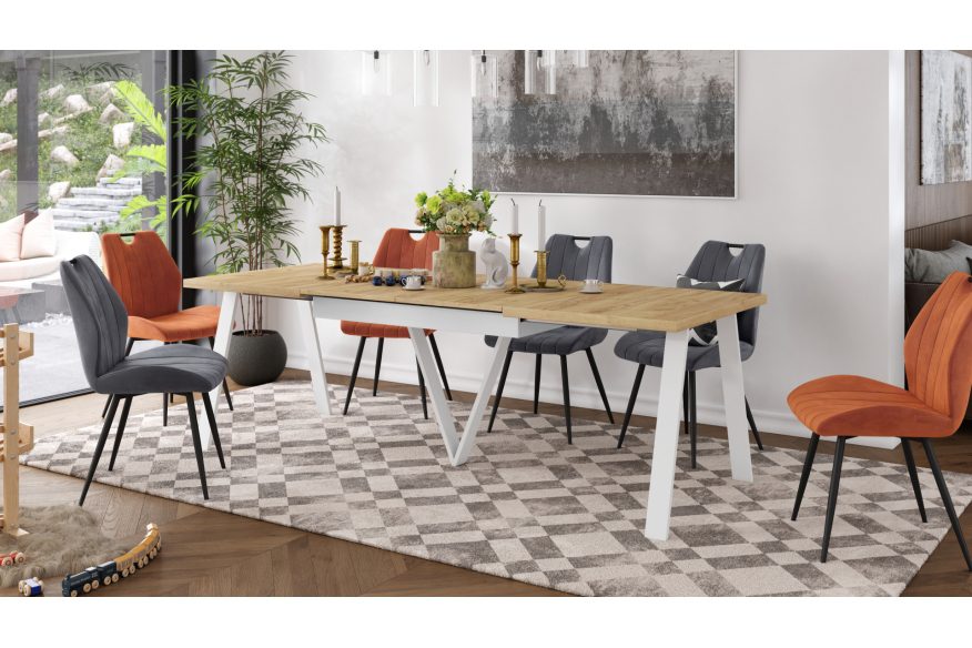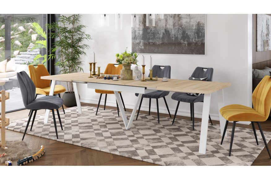 Stort udtræksbord til 18 personer – AVERY i Sonoma-eg og hvid