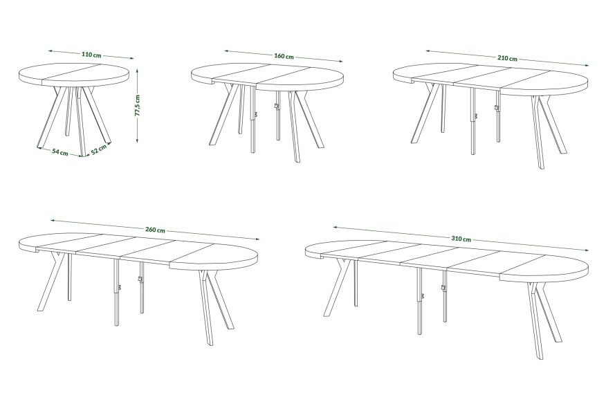 EXPANSO – moderne matsort rundt spisebord med udtræk til 310 cm