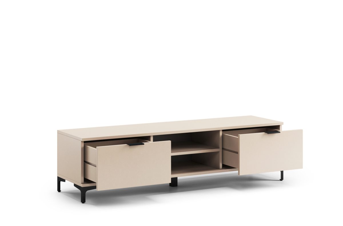Stilrent TV-bænk LANA i blød beige og sort metal