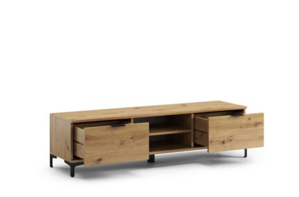 Den lave profil giver et strømlinet look, der passer perfekt under fladskærmen i en moderne lejlighed.